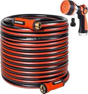 Garden Hose Water Hose 100ft Lightweight Flexible, Kink-Free Outdoor Heavy Duty 3/4" Rustproof Metal Fittings, 10-Pattern 360° Rotating Spray Nozzle for Yard Lawn Car Wash