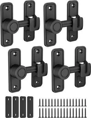 90/180 Degree Flip Barn Door Lock, Heavy Duty Sliding Door Latch Zinc Hardware Privacy Protection for Barn, Window, Gate, Garden, Bathroom, Cabinet (Black-4PCS)