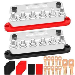 600A Power Distribution Block 12V Bus Bar 6 x 3/8" (M10) Terminal Studs 12 Volt Battery Busbar for Boat Automotive Solar