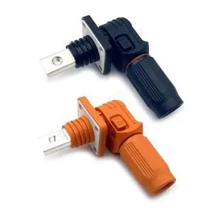 250A Battery Energy Storage Connector, 70mm² High Current Connectors IP67 Waterproof Copper Brand Thread Wiring Power Adapter Quick Plug Terminal Right Angle Plug and Socket (1500V Black+Orange)