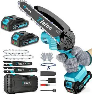 Mini Chainsaw Cordless, 8 Inch & 6 Inch Portable Electric Chainsaw,Battery Powered Handheld Power Chain Saw with 2 Batteries and Auto Oil,for Tree Trimm,Cutting Wood,Garden Tool,Gift for Men Women