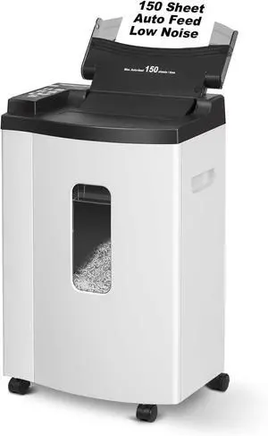 150 Sheet Auto-Feed Paper Shredder, Micro Cut P-5 Super High Security (5/64 x 19/32 inches), Large 6-Gallon Bin, 20 Mins Continuous Run, 55dB Ultra-Quiet for Home Office Use, White