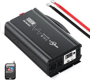 1000W Pure Sine Wave Inverter 12V DC to 110-120V AC Efficient Energy Converter for Home, RV Use with Wireless Remote Control with USB C Ports