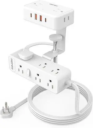 Dual Layer Desk Clamp Power StripWhite, Desktop Edge Mount Charging Station with 13 Outlets 4 USB Ports (2 USB C), Under Desk Surge Protector(1700 Joules), 10 Ft Extension Cord for Office
