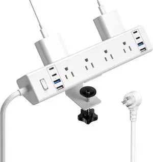 40W Fast Charging Station,Desk Clamp Power Strip 20W USB C,8 Outlets,8 USB Ports,4 USB C and 4 USB A, Office Furniture Surge Protector, 14AWG Cord, Fits 1.9" Tabletop Edge (White, 10FT Length)
