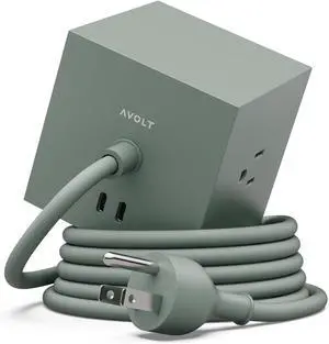 Square 1 Power Strip with USB-C Fast Charging, Magnetic Cube Extension Cord for Desk (Oak Green, USB C - 5.9ft)