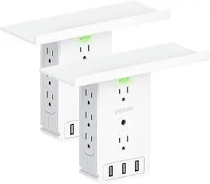 Multi Plug Outlet Extender and Universal Wall Charging Station | 8 Outlet Plug Extender with 3 USB Charging Ports and Organizer Shelf - White Wall Socket Outlet Extender (2-Pack)