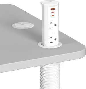 Compact (2) PD30W USB-C (2) 15 Amp in-Drawer Docking Station Outlet Plugs with Retractable Arm, White