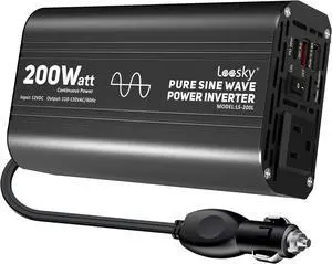Pure Sine Wave Car Inverter 200 Watt 12V DC to 110V 120V AC Car Power Inverter Converter with 30W PD USB-C & QC3.0 USB-A Fast Charging for Vehicle Truck RV by
