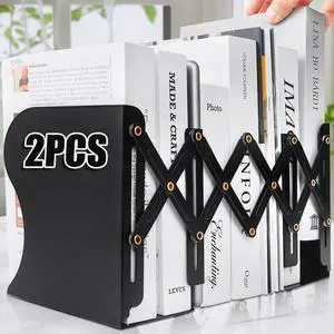 2PCS Heavy Duty Book End to Hold Books, Adjustable Bookends Book Holder for Shelves, Decorative Book Organizer for Desk, Sturdy & Flexible - Metal Book Ends Binder Holder for Tabletop