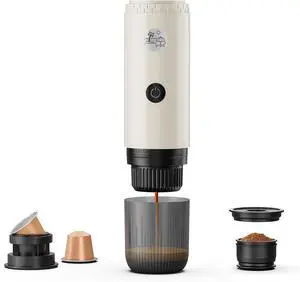 Portable Espresso Machine Mini 19Bar Rechargeable 2-in-1 Multi-Function Electric Coffee Machine One Key Extraction Compatible with NS Capsules and Ground Coffee for Office Home 7800MAH (White)