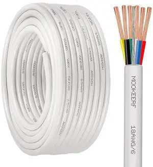 18/6 Shielded Wire 18AWG 6 Conductor 50FT Shielded Plenum Cable White CL3P Jacket Alarm Control Cable Stranded Pure Copper for Low Voltage LED,Burglar System,Fire Detector,Security Station