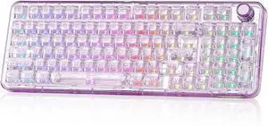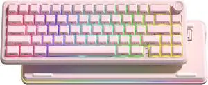 65% Layout Wireless Mechanical Keyboard,Cute Crystal Gaming Keyboard with Knob, Hot Swappable Pre-lubed Switches,Gasket Mounted RGB for Win/Mac,Pink