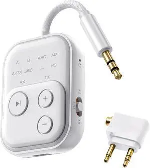 Bluetooth Wireless Transmitter/Receiver Adapter,Supports 2 Headphones2-in-1 Bluetooth Transmitter Receive with aptX Low Latency,3.5mm Aux Audio Jack Adapter for Airplane/Gym/Car Home Stereo System