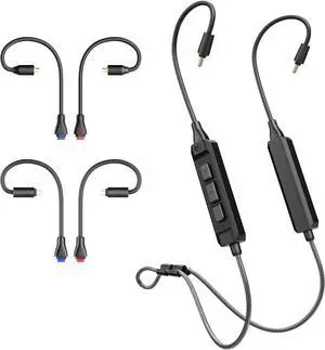 BT3 Bluetooth Wireless Adapter Cable for in-Ear Monitors - Includes MMCX, 2-pin (0.78mm) & DC connectors for Wide IEM Compatibility; Bluetooth 5.4, aptX HD, aptX Adaptive, LDAC, Auracast