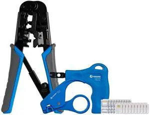 TK-RJ45 Network Tool Kit for CAT5, CAT5E, and CAT6 Includes 6-in-1 Crimper RJ11 / RJ12 / RJ45, Punch Down Tool, Cable Stripper, and RJ45 & RJ12 Connectors