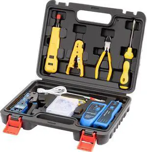 Network Tool kit, Cat6 Cat5e Cat5 Crimping Tool RJ45 Crimp Tool kit, Pass Through rj45 Crimper, Wire Tracker, 110/88 Punchdown Tool, Cat6 Pass Through Connectors