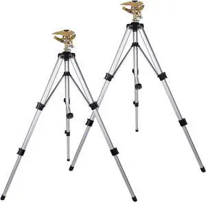 Large Impact Sprinkler Head on Tripod Base, Adjustable Zinc Alloy Lawn Sprinklers for Yard Lawn Garden, 3/4" NH Connector, 360 Degree Large Area Coverage Irrigator with Extension Legs, 2 Pack