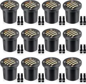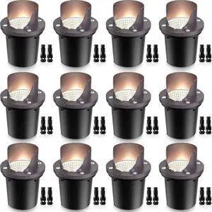 12 Pack Low Voltage Landscape Lighting 12W LED Outdoor In-Ground Waterproof Shielded Well Lights Warm White Paver Lights with Wire Connectors for Pathway Garden Yard Fence Deck