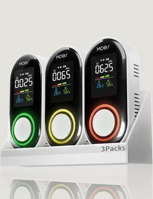 Carbon Monoxide Detector Plug in, Backup Battery Digital CO Detector with Real-Time Display for CO Level, Temp & Humidity, Compact Plug-and-Play CO Alarm for Home, Apartment, RV & Travel, 3 Pack
