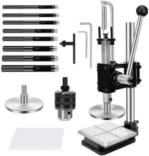 Leather Hole Puncher Hand Punching Machine Manual Press Puncher Punch Tools for DIY Leather Craft Punching Holes and Forming Pressing(with Chuck, PP Plate,Aluminum Plate)