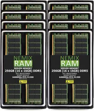 NEMIX RAM 256GB (16X16GB) DDR5 6400MHz PC5-51200 1Rx8 1.1V CL52 288-PIN ECC RDIMM Registered Server Memory Kit Compatible with SuperMicro BigTwin SuperServer SYS-222BT-HER - OEM