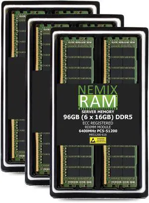 NEMIX RAM 96GB (6X16GB) DDR5 6400MHz PC5-51200 1Rx8 1.1V CL52 288-PIN ECC RDIMM Registered Server Memory Kit Compatible with SuperMicro BigTwin SuperServer SYS-222BT-HER - OEM