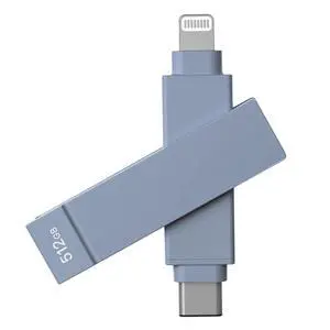 PioData iXflash 512GB iPhone Flash Drive Apple MFi 2-in-1 Lightning & USB-C Photo Backup Drive for iPhone, iPad & PC Blue