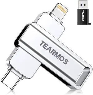 TEARMOS 256GB Flash Drive Intended for iPhone iPad, Memory Stick Storage for Photos and Videos Backup, Compatible with iPhone iPad Android PC, Plug and Play, No Application Required (Metal Silver)