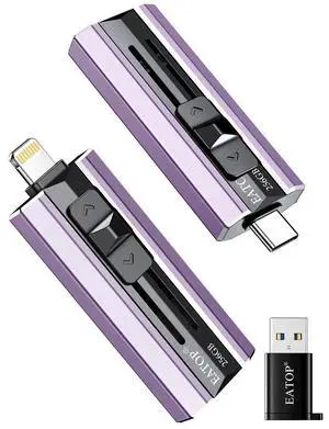 EATOP 256GB Flash Drive Intended for iPhone iPad, Memory Stick Storage for Photos and Videos Backup, Compatible with iPhone iPad Android PC, Plug and Play, No Application Required (Purple)