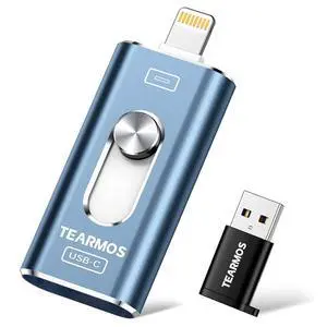 TEARMOS 256GB Photo Stick for iPhone Flash Drive, Memory Stick Phone Storage for Photos and Videos Files Backup, Compatible with iPhone iPad Android PC, Plug & Play, No App Required (Blue)