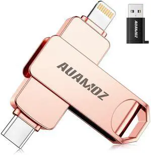 AUAMOZ 512GB Flash Drive Intended for iPhone, Memory Stick Storage Files Photos Videos Backup, Compatible with iPhone iPad Android PC, Plug and Play, No Application Required (Rose Gold)