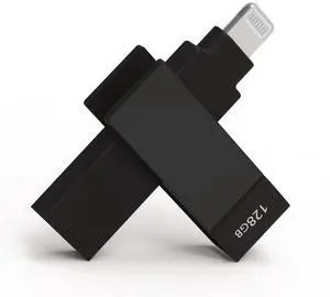 PioData Apple MFi Certified iXflash 128 GB Backup Photo Stick 2-in-1 USB Type A & Lightning, USB for iPhone, iPad, External Photo Storage for iPhone and Computer, Black