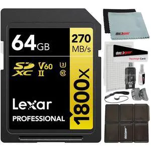 Lexar LSD128CB2000R CYU 128GB 17p SDXC 2000x r300MB/s w260MB/s Class 10 UHS-II U3 V90 4K Professional Secure Digital Extended Capacity Card w/ SD Reader