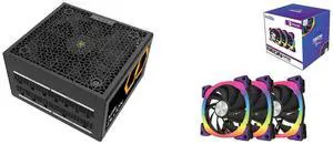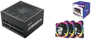 Super Flower Zillion FG 1050W Cybenetics Platinum, 80+ Gold, Full Modular, ATX 3.1 / PCIe 5.0, W/12V-2x6 Cable (2x8pin - 16pin native cables), Power Supply, FDB Fan, SF-1050Z12FG, Black version Super Flower NEON ARGB 120mm fan, Triple-Pack, - $157.98