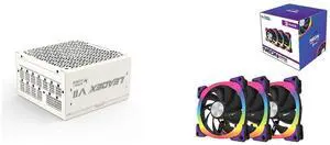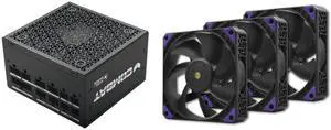 Super Flower Zillion FG 850W Cybenetics Platinum, 80+ Gold, Full Modular, ATX 3.1 / PCIe 5.0, W/12V-2x6 Cable (2x8pin - 16pin native cables), Power Supply, FDB Fan, SF-850Z12FG, Black version Super Flower NEON ARGB 120mm fan, Triple-Pack, P - $137.98