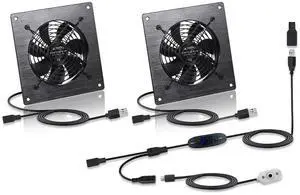 Dual 120mm USB/DC Silent Cooling Fan - 5V/12V Dual Voltage, 6-Inch, 6-Speed Adjustment, Timed Cycle Switch - for Home Theater AV Cabinets, Server Racks, Cupboards, Pet Nests,Greenhouses,