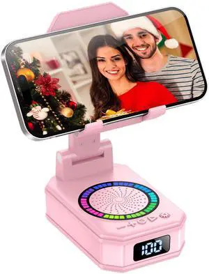 Gifts for Men Women, Cell Phone Stand with Wireless Bluetooth Speaker, Colorful LED Lights, Anti-Slip Base HD Surround Sound, Rechargeable (3000mAh), Gift for Teens, Men, Women for Christmas Pink