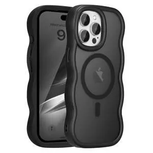 SOEWIOU Magnetic for iPhone 15 Pro Max Case, Compatible with MagSafe, 2025 Transparent Wave Frame Design Case Soft Edge Cover Cute Clear Matte Shockproof Protective Phone Cover, Black
