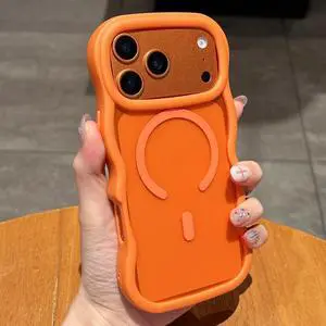 SOEWIOU Magnetic for iPhone 16 Pro Max Case, Compatible with MagSafe, Transparent Wave Frame Design Case Soft Edge Cover Cute Clear Matte Shockproof Protective Phone Cover, Orange