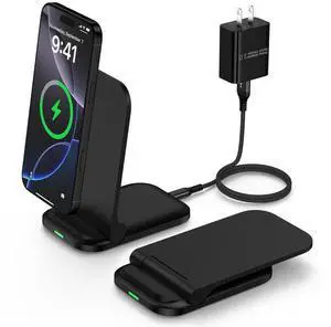 Magnetic Wireless Charger, [2 Pack] 15W Foldable Fast Charging Stand for iPhone 17/16/15/14/13/12 Series/AirPods 3/2/Pro 2/3, Samsung Wireless Charger Station for Galaxy S25 Ultra/S24/S23/S22/S21/S20
