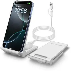 Foldable Samsung Wireless Charger Stand Fast Charging for Samsung Galaxy S25 Ultra S24 FE S23 S22 S21 S20 Z Flip7, Android Phone Wireless Charger Station for Google Pixel 10 9 Pro XL Fold with Adapter
