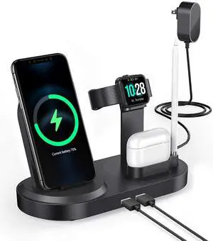 15W 3 in 1 Foldable Magnetic Wireless Charging Station 360 Rotation Fast Charging Stand for Phone Earbuds Smart Watch