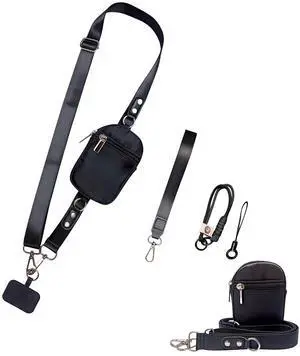 Clip and Go Strap for Phone with Wallet - Adjustable and Detachable Phone Lanyard Crossbody, Wrist Wallet for Home Travel (Black)