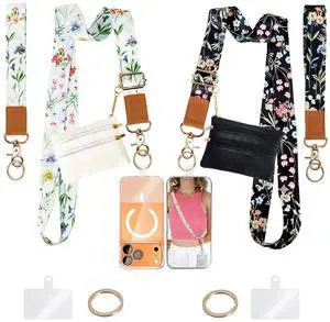 Clip and Go Strap for Phone with Wallet Crossbody,Lanyard Crossbody with 2 Phone Tabs for All Phones, Premium Metal Buckles, Skin-Friendly for Women