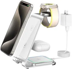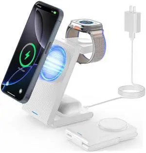 Wireless Charger Stand Charging Station: 3 in 1 Charger Stand Multiple Devices for Apple - iPhone 17 16e 16 15 14 Pro Max 13 12 11 - Watch 10 9 8 7 6 5 4 3 2 SE and Ultra Series-Airpods 4 3 Pro, BlueBrand: GETPALSName: GETPALS W336Type: USB Type-C, USB-C cable, charging stand, charging stationCompatibility: Smartphones, Headphones, Smartwatches, 3 in1 Magnetic Wireless Charger, Fast Charging, Charging Indicator, phone watch airpods charging station, Wireless Charging, iphone and watch charging station, phone and watch charging stationModel #: 226745752251