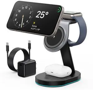 Compatibility: Compatible with iPhone 16/ 16 Plus/ 16 Pro/ 16 Pro Max/iPhone 15/ 15 Plus/ 15 Pro/ 15 Pro Max/ 14/ 14 Plus/ 14 Pro/ 14 Pro Max/ 13/ 13 mini/ 13 Pro/ 13 Pro Max/ 12/ 12 mini/ 12 Pro/ 12 Pro Max, Compatible with iWatch 10/9/8/7/6/5/4/3/2/SE/Ultra/Ultra 2, Compatible with AirPods 2/3/4/Pro/Pro 2(Note:For AirPods 2/3/4 come in 2 versions,make sure to use wireless charging case), Compatible with Apple Watch 10/9/8/7/6/5/4/3/2/Ultra 2/Ultra 1/SE, Compatible with AirPods 3/2 Pro 2/Pro. (Note: Please use Mag-Safe phone case or without case for wireless charging), 3 in 1 Charging Station Compatible with Magsafe Charger Wireless Charger Stand for iPhone 16 15 14 13 12 Series, Wireless Charging Station for AirPods, Wireless Charging Stand for iWatch Series, Qi2 Certified15W Wireless Ch...