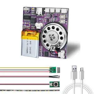 Sound Module, 16MB Push Button, Magnetron, Light Control Activated Recordable Voice Sound Chip Module with LED Light Strip, Speaker, for Greeting Card Audiobook, Xmas Presents Boxes, Kids's Toys.