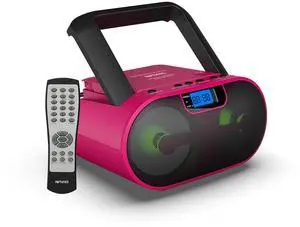 Kids Portable CD Player Boombox with Bluetooth & Multi-Color LED Lights - Pink Stereo Radio with USB/AUX, Karaoke Mic Input, MP3 Music Player for Girls