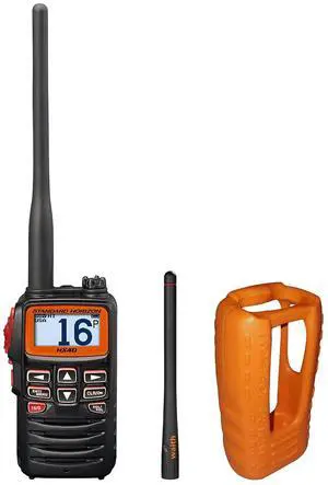 Standard Horizon HX40 6W Ultra Compact Marine Handheld VHF Transceiver with FM Band - Display Radio with SCH-11 Hangar Bracket, Orange Floating Case & 136-174MHz Rubber Duck Male Antenna - Bundle Kit